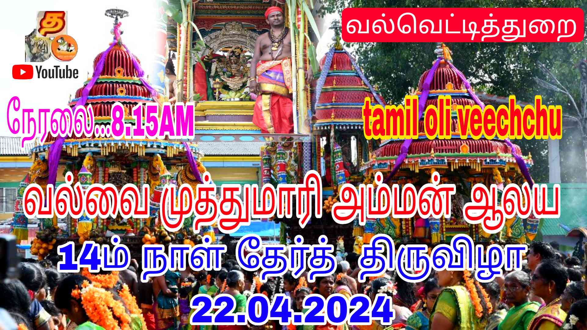 - நேரலை..வல்வை முத்துமாரி அம்மன் ஆலய 14ம் நாள் தேர்த் திருவிழா 22.04.2024